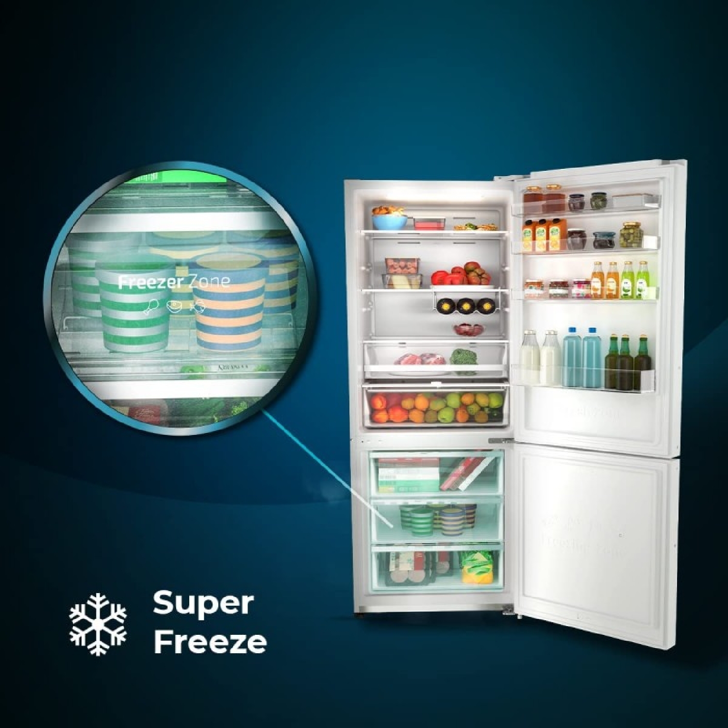 White chest freezer with a capacity of 142 litres, E class, Inverter Plus motor, display door and convertible into a refrigerator.