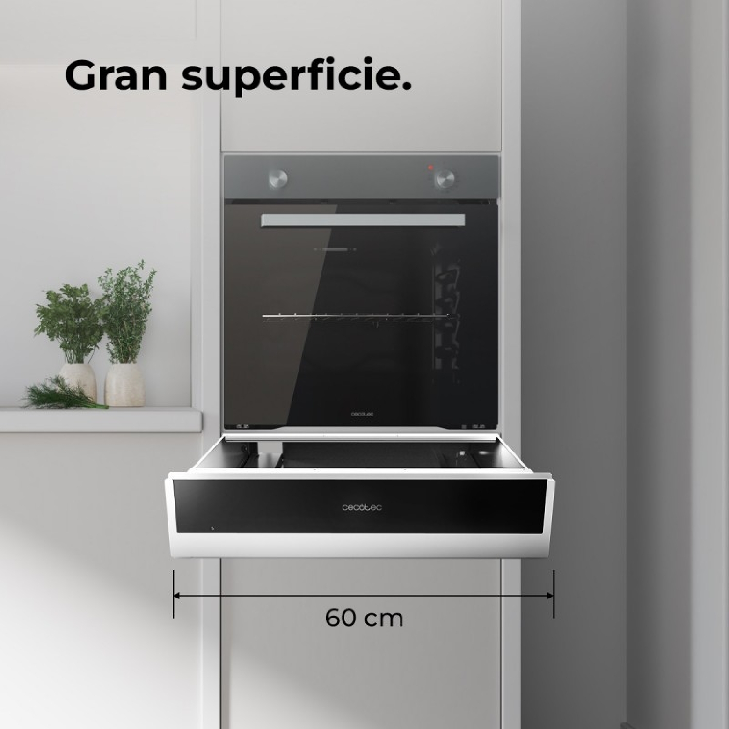 Edge 60 cm built-in warming drawer with adjustable temperature, mechanical control and anti-slip.