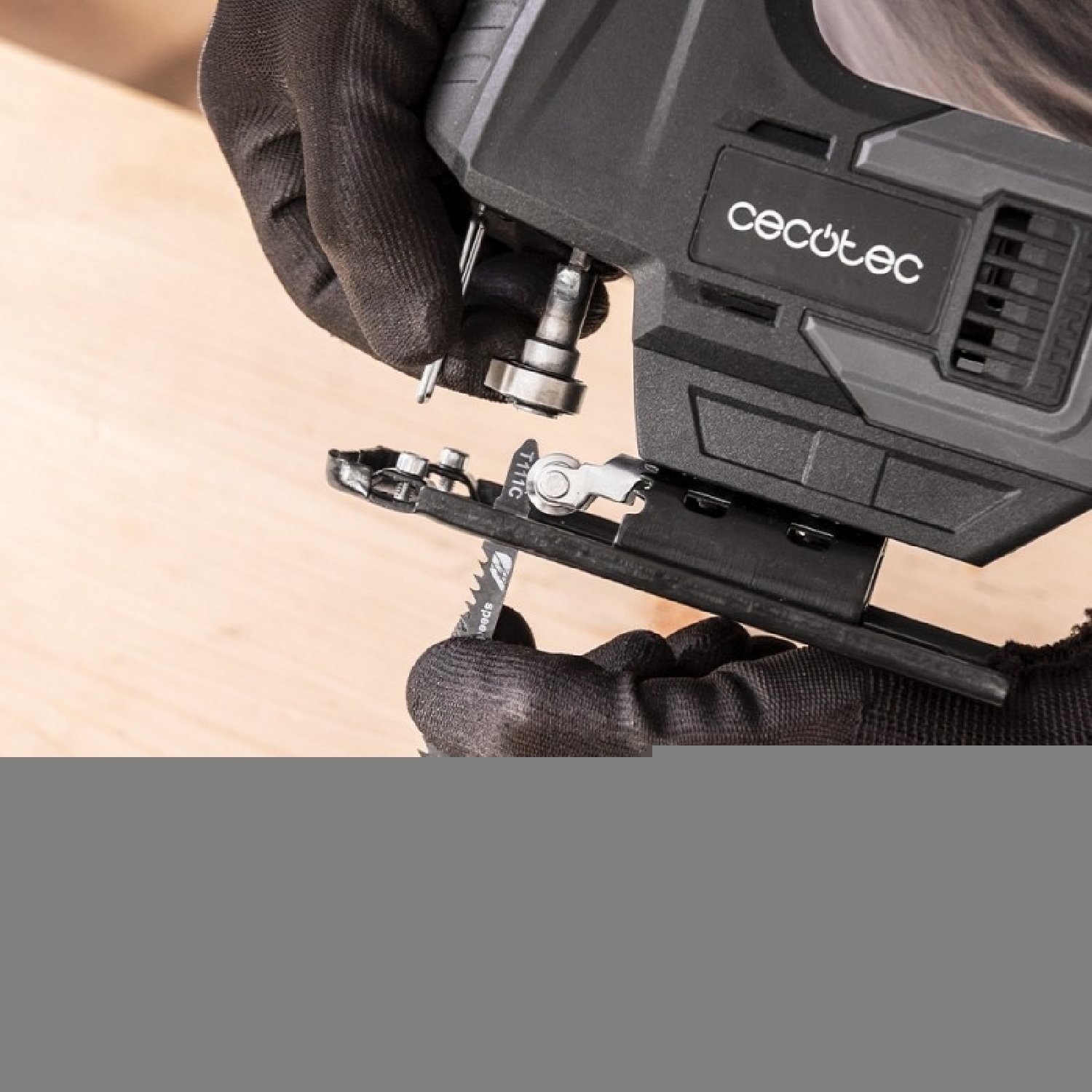 21 V cordless jigsaw. Freedom of movement. Tool-free chuck change. Laser guide and LED light. Includes 8 blades and guide ruler.